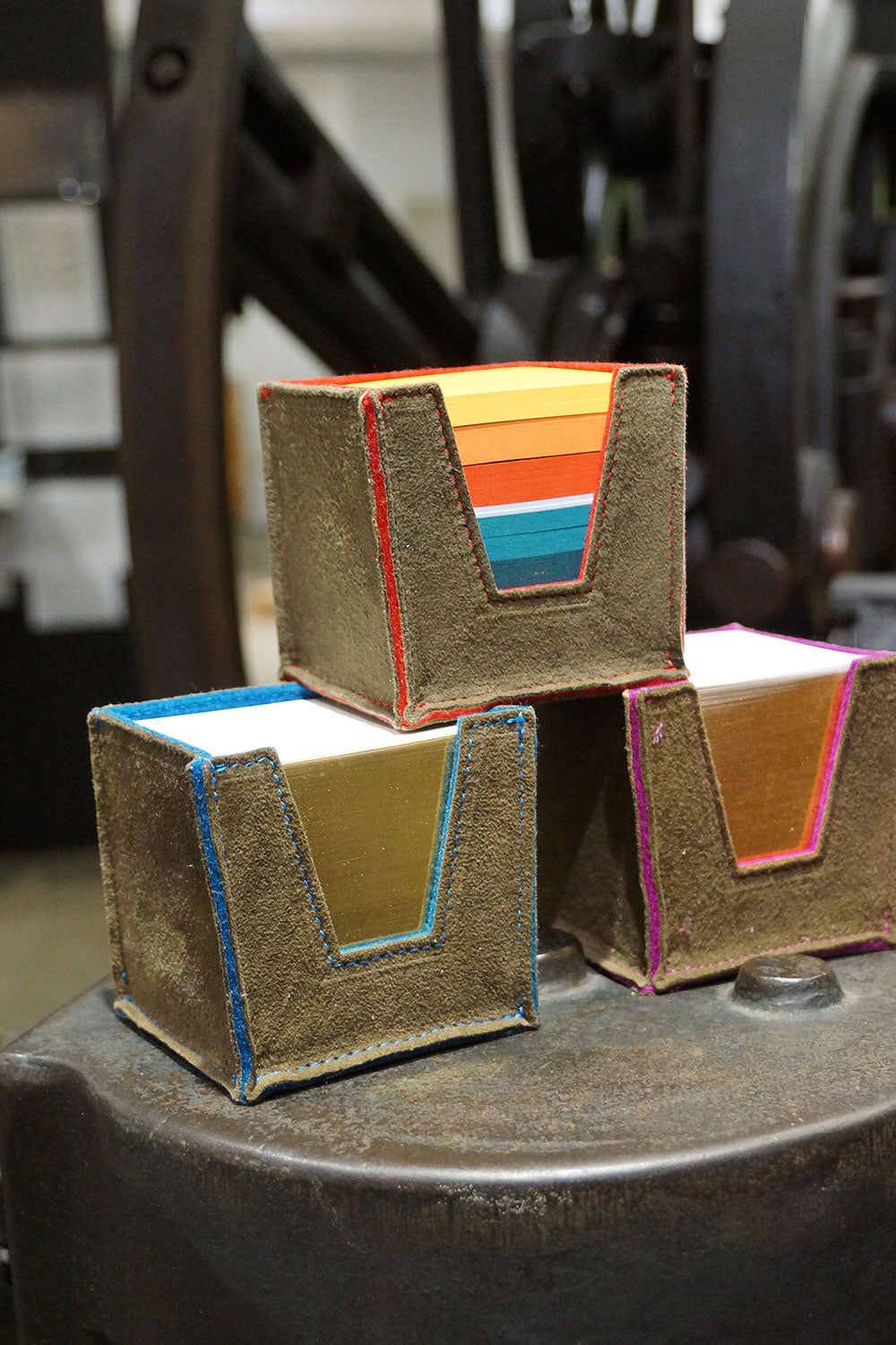 Edle Papeterie trifft feinstes Hirschleder. Stilvolle und robuste Buchhülle im DIN-B5-Format aus feinstem, naturgegerbtem Hirschleder. Eine nachhaltige, langlebige Alternative zum klassischen Leder-Notizbuch, gefüttert mit hochwertigem Wollfilz aus Deutschland. Der formschöne Zettel-Cube in drei Grössen bringt Ordnung und Eleganz auf den Schreibtisch und erleichtert die tägliche Arbeit.